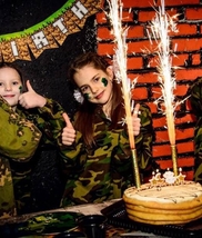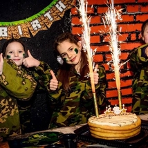 Лазертаг баталии, аниматоры, вынос торта, конкурсы